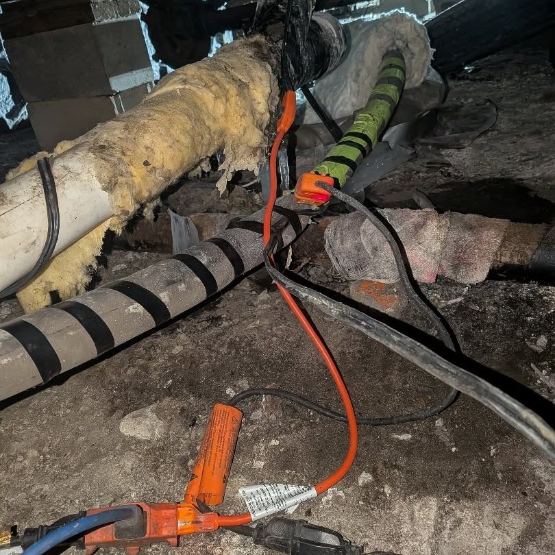 We tackled a frozen geothermal floor heating line. Using a 3/8 jetter hose, we cleared two blockages at 25’ and 30’. Extending to 50-60’, we found rusty water, ensuring the line is now clear and flowing smoothly.